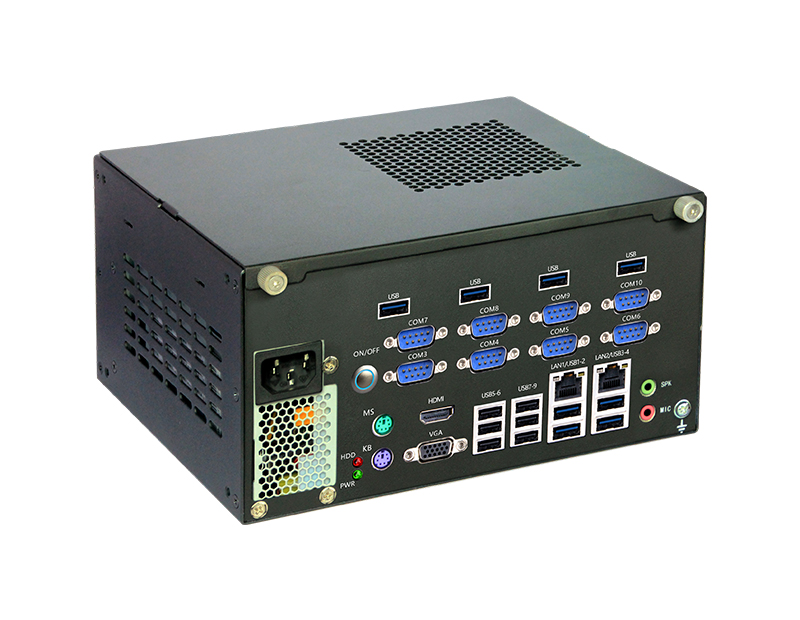 支持Intel 10代 Core i3/i5/i7 LGA1200 65W處理器,2*LAN,6*USB3.0, 4~6*USB2.0(可選),2-10*COM(可選),275mm x 200mm x 135mm