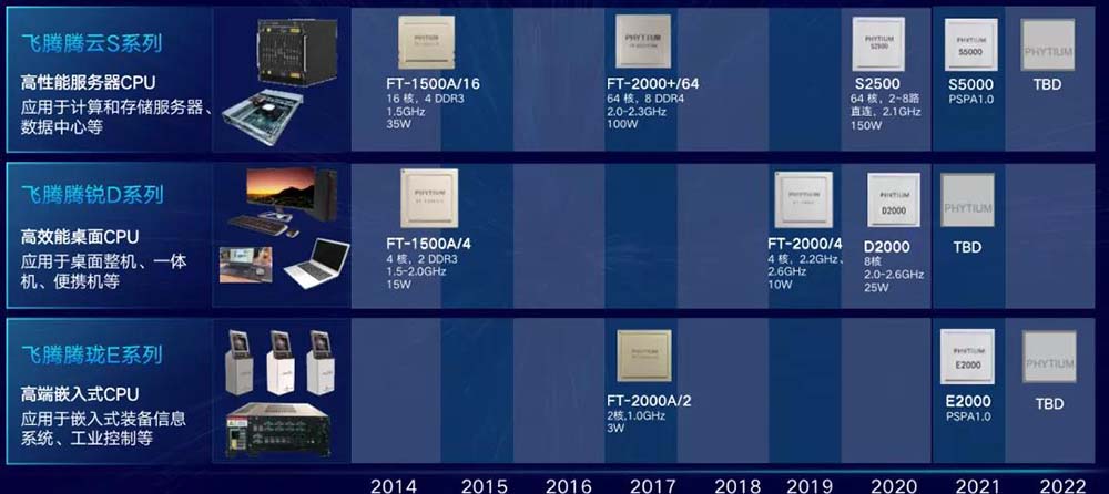 芯片被譽(yù)為人類智慧皇冠上的一顆明珠,也是中國電子工程發(fā)展史上不可或缺的一環(huán)。飛騰公司自成立以來,不斷致力于國產(chǎn)高性能、低功耗通用計(jì)算微處理器的設(shè)計(jì)研發(fā)和產(chǎn)業(yè)化推廣,同時聯(lián)合眾多國產(chǎn)軟硬件生態(tài)廠商,提供基于國際主流技術(shù)標(biāo)準(zhǔn)、中國自主先進(jìn)的全國產(chǎn)信息系統(tǒng)整體解決方案,支撐國家信息安全和重要工業(yè)安全。目前,飛騰已形成了騰云 S 系列、騰銳 D 系列和騰瓏 E 系列 3 大產(chǎn)品譜系,研發(fā)并量產(chǎn) 7 款芯片產(chǎn)品。